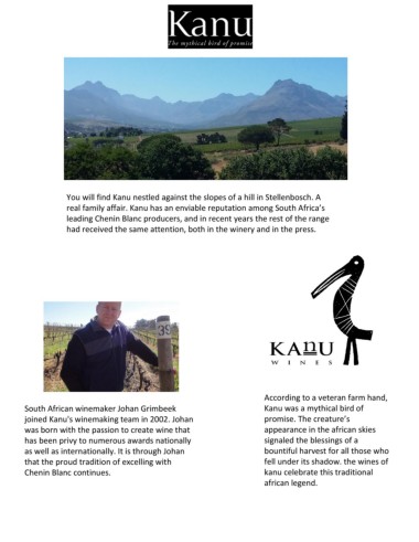 joined Kanu's winemaking team in 2002. Johan promise. The creature’s