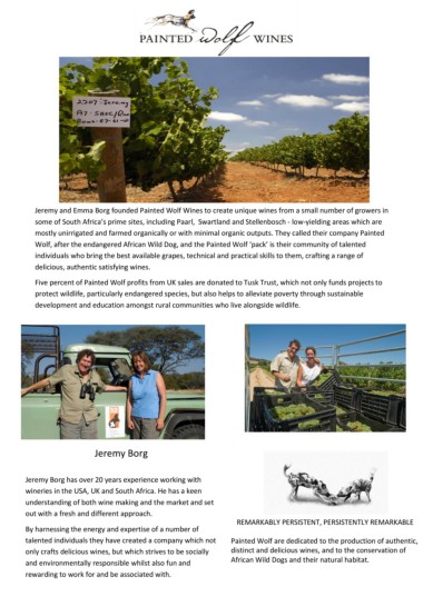 Jeremy and Emma Borg founded Painted Wolf Wines to create unique wines from a small number of growers in