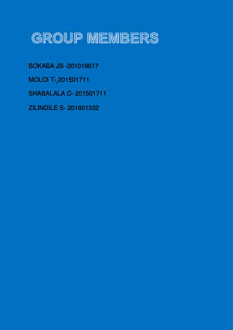 BOKABA JS -201016617 MOLOI T- 201501711 SHABALALA C- 201501711 ZILINDILE S- 201601332