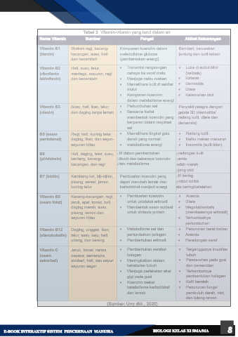 Tabel 3. Vitamin-vitamin yang larut dalam air