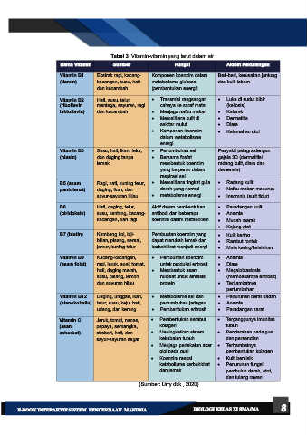Nama Vitamin Sumber Fungsi Akibat Kekurangan