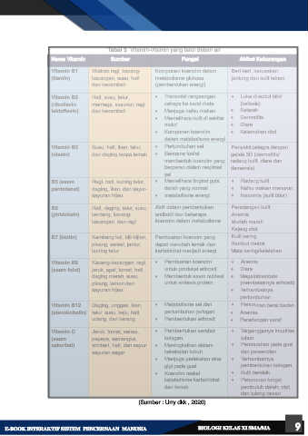 Tabel 3. Vitamin-vitamin yang larut dalam air