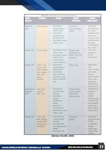 Klorin (Cl) Garam dapur • Memelihara kerja Mengganggu • Kram otot