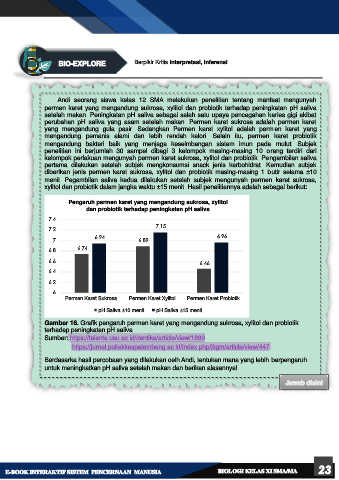 Gambar 16. Grafik pengaruh permen karet yang mengandung sukrosa, xylitol dan probiotik