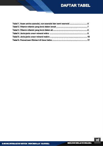 Tabel 6. Pencernaan Kimiawi di Usus halus ................................................................. 17