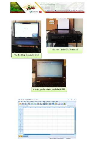 The 3-in-1 EPSON L320 Printer The Desktop Computer Unit A faculty member’s laptop installed with SPSS