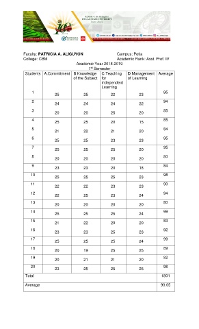 Faculty: PATRICIA A. ALIGUYON Campus: Potia