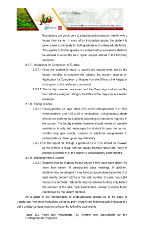 in the master’s, and 1.75 or 89 in the doctoral,   are given to students