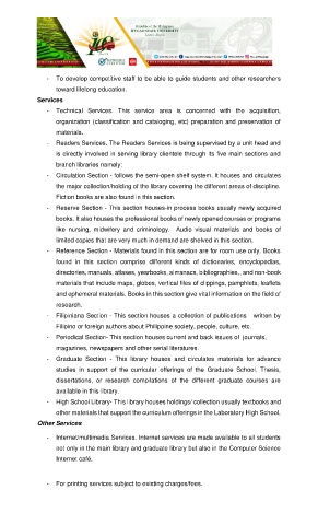 - Circulation Section - follows the semi-open shelf system. It houses and circulates