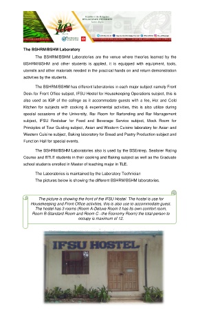 The BSHRM/BSHM has different laboratories in each major subject namely Front