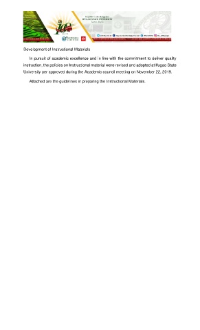 instruction, the policies on Instructional material were revised and adopted at Ifugao State