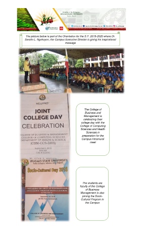The picture below is part of the Orientation for the S.Y. 2019-2020 where Dr.