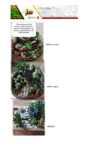 The pictures are Dish Garden output during the tourism week program, the activity is participated by the CBM Students BSHM 2 Output BSM1 Output BSHRM 3