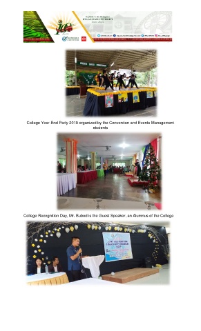 College Year-End Party 2019 organized by the Convention and Events Management students College Recognition Day, Mr. Bubod is the Guest Speaker, an Alumnus of the College