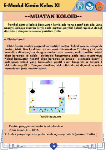 Koloid bermuatan negatif akan bergerak ke anode ( elektrode positif )