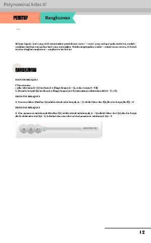 a. Jika suku banyak f (x) berderaiad n dibagi dengan (x – k), maka sisanya S = f (k)
