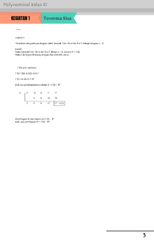 Jadi sisa pembagiannya adalah S = f (2) = 27