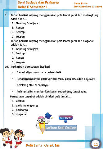 9. Tarian berikut ini yang menggunakan pola lantai gerak tari diagonal