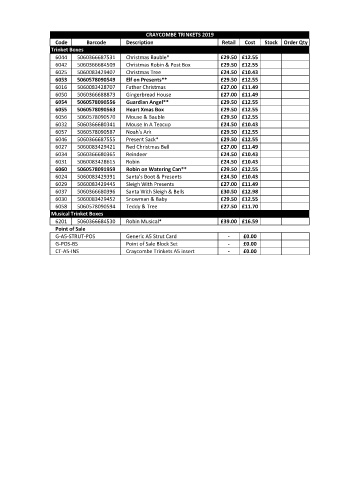 Code Barcode Description Retail Cost Stock Order Qty