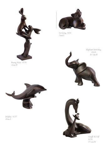 Cat Lying 8216 13cm L Elephant Stretching 8224 16.5cm H Boxing Hares 8226 22cm H Dolphin 8227 24cm L Giraffe & Calf 8234 17.5cm H