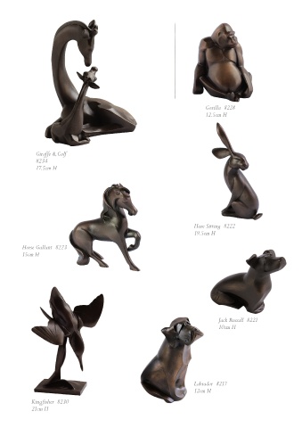 Gorilla 8228 12.5cm H Giraffe & Calf 8234 17.5cm H Hare Sitting 8222 19.5cm H Horse Gallant 8223 15cm H Jack Russell 8221 10cm H Labrador 8217 12cm H Kingfisher 8230 21cm H