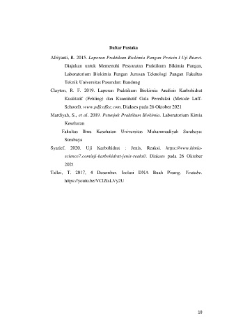 Mardiyah, S., et al. 2019. Petunjuk Praktikum Biokimia. Laboratorium Kimia