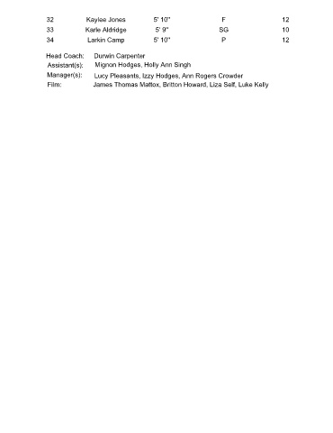 Manager(s): Lucy Pleasants, Izzy Hodges, Ann Rogers Crowder