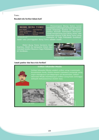 Tomo. Bacalah teks berikut dalam hati! Amati gambar dan baca teks berikut! n Iskandar Muda, mengabdikan seluruh hidupnya bagi negara dan 109