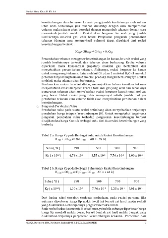 Tabel 2 b. Harga Kp pada Berbagai Suhu untuk Reaksi Kesetimbangan:
