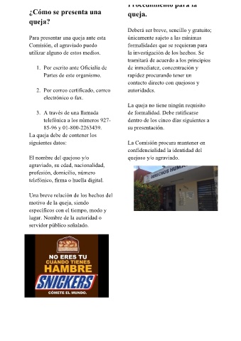 Para presentar una queja ante esta únicamente sujeto a las mínimas
