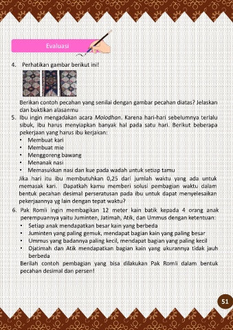 6. Pak Romli ingin membagikan 12 meter kain batik kepada 4 orang anak