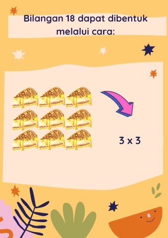 Bilangan 18 dapat dibentuk melalui cara: 3 x 3