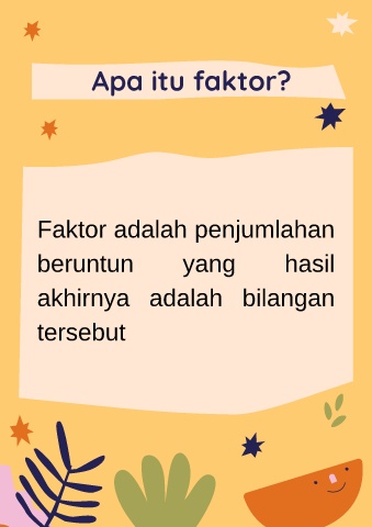 Apa itu faktor? Faktor adalah penjumlahan beruntun yang hasil akhirnya adalah bilangan tersebut