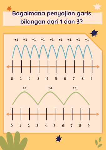 Bagaimana penyajian garis bilangan dari 1 dan 3?