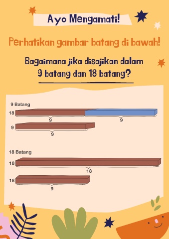 Ayo Mengamati! Perhatikan gambar batang di bawah! Bagaimana jika disajikan dalam 9 batang dan 18 batang?