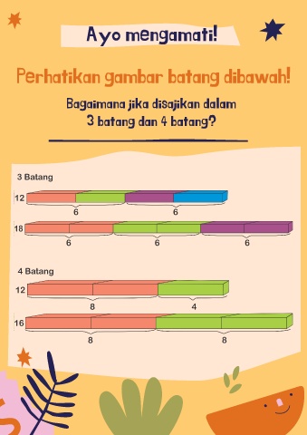 Ayo mengamati! Perhatikan gambar batang dibawah! Bagaimana jika disajikan dalam 3 batang dan 4 batang?