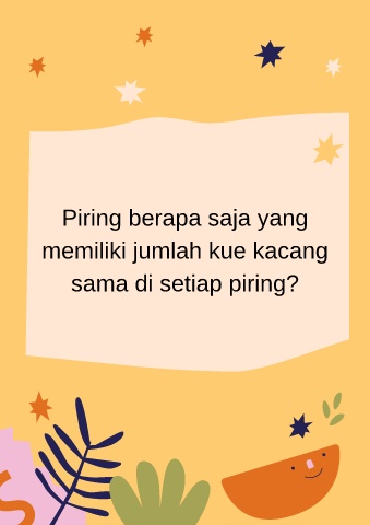 Piring berapa saja yang memiliki jumlah kue kacang sama di setiap piring?