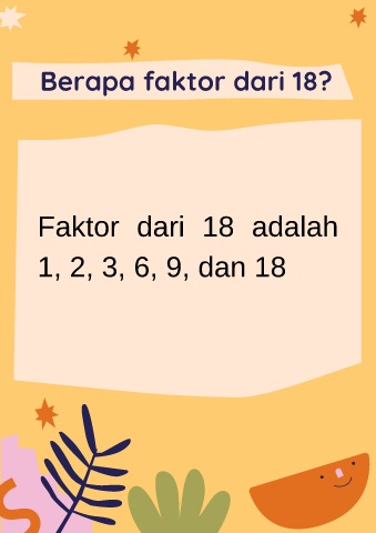 Berapa faktor dari 18? Faktor dari 18 adalah 1, 2, 3, 6, 9, dan 18