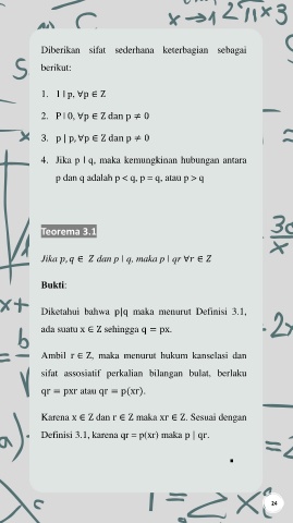 Jika , ∈ dan p | q, maka p | qr ∀ ∈