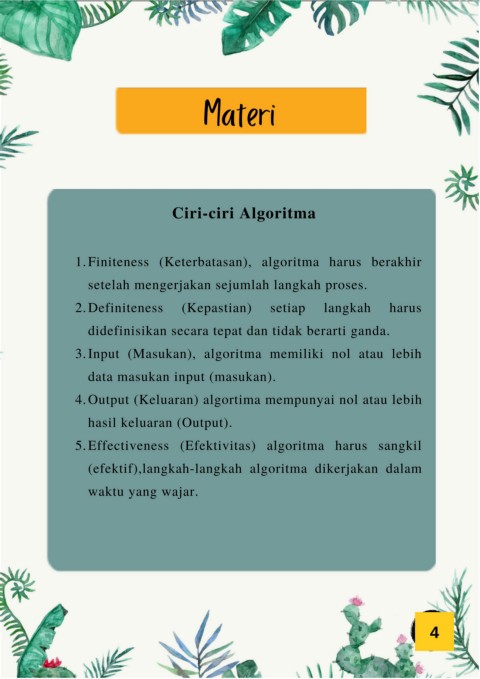 4. Output (Keluaran) algortima mempunyai nol atau lebih
