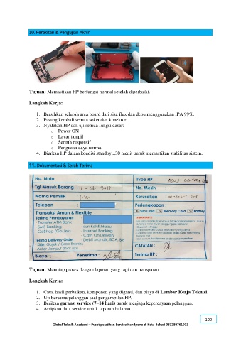 Tujuan: Memastikan HP berfungsi normal setelah diperbaiki.