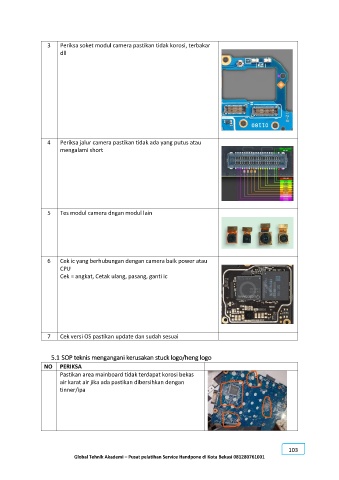 3 Periksa soket modul camera pastikan tidak korosi, terbakar