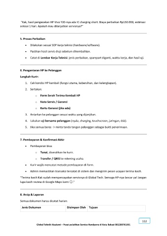 “Terima kasih Kak sudah mempercayakan servisnya di Global Tech. Semoga HP-nya lancar ya! Jangan