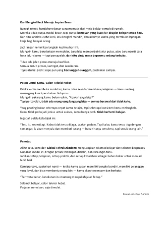 Pesan untuk Kamu, Calon Teknisi Hebat