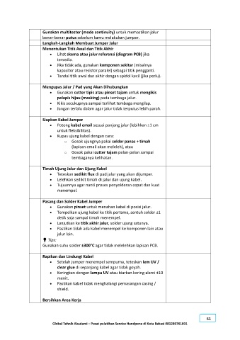 Gunakan suhu solder ±300°C agar tidak melelehkan lapisan PCB.