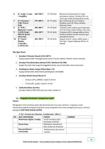 8 IC WiFi / 380–400°C 40–50 detik Gunakan udara sedang agar komponen