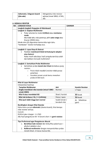 Jika hasil pengukuran 0Ω → berarti short → ganti resistor.