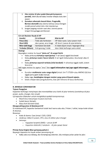 Terbakar (hitam) Fisik gosong / retak Jalur tidak berfungsi sama sekali
