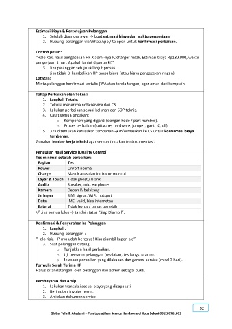 1. Setelah diagnosa awal → buat estimasi biaya dan waktu pengerjaan.