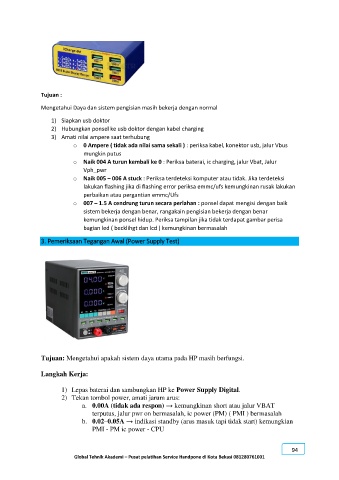 Tujuan: Mengetahui apakah sistem daya utama pada HP masih berfungsi.